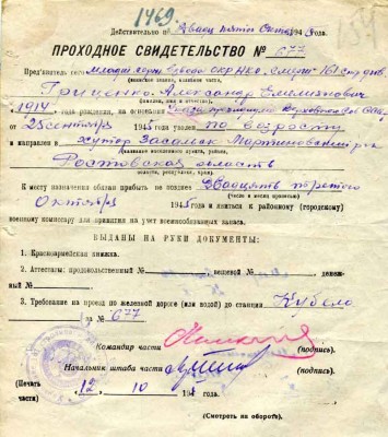 10.09.46. так как не был дома с 1941 года. Разрешение получает 15.08.1946.