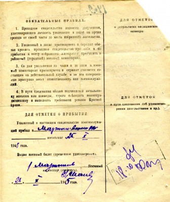по 10 августа 1946 года. К месту назначения в Удобенский РВК прибыть