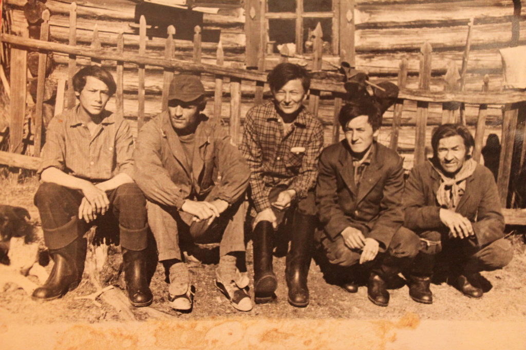 Оща-лэйп-павыл. Мирон Бахтияров с туристами (спиртоносами). Это старая юрта, здесь жили Варвара Кузьмовна с сыновьями, Петром, Мироном и дочерью Альбиной.