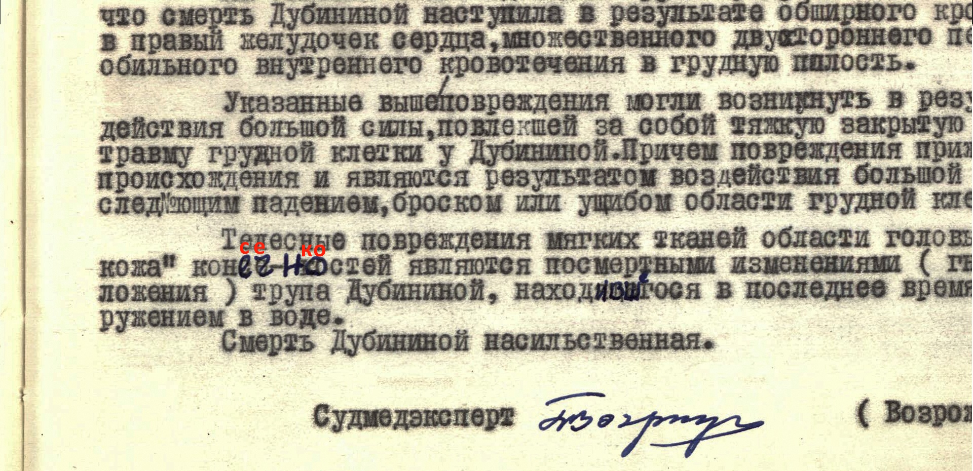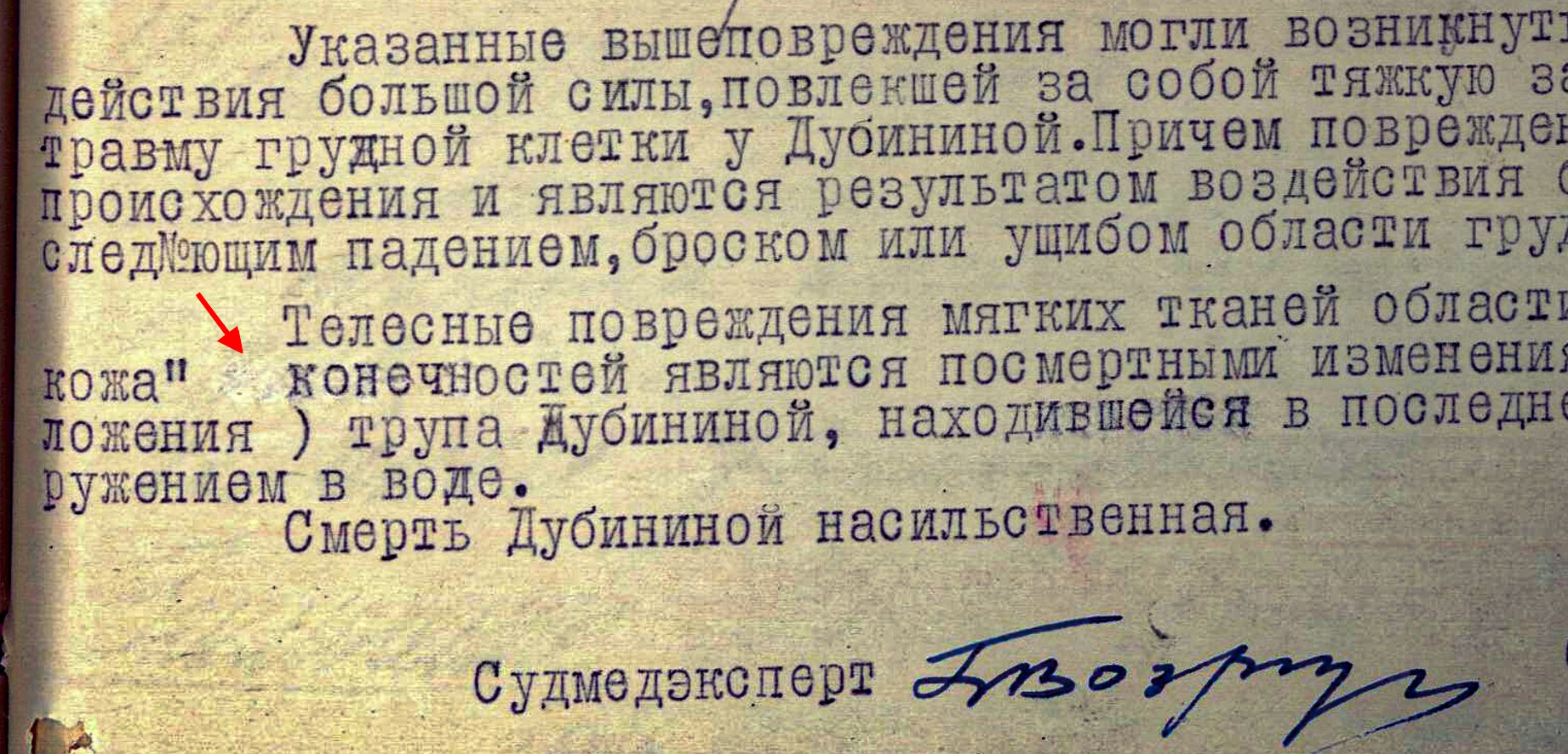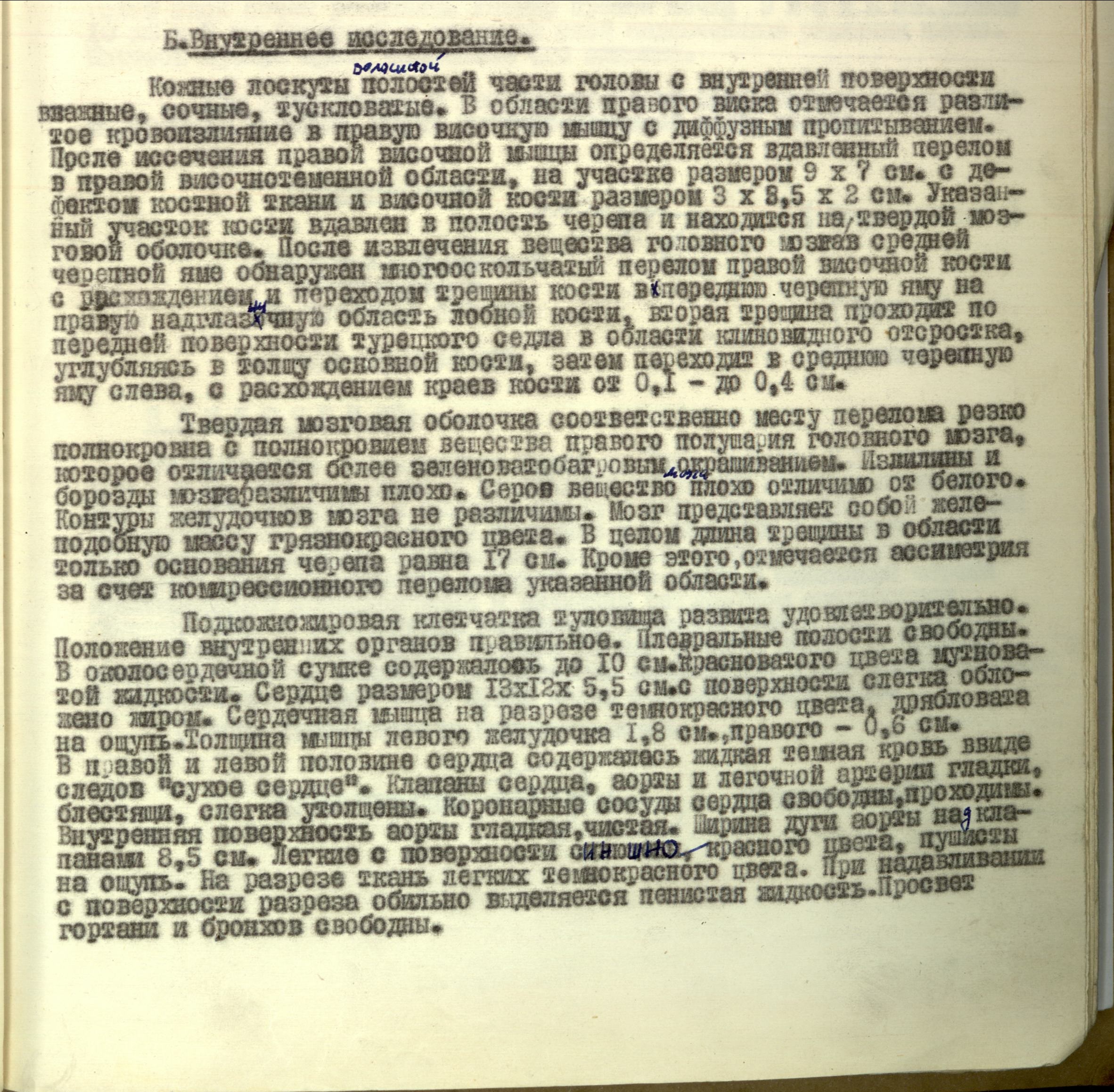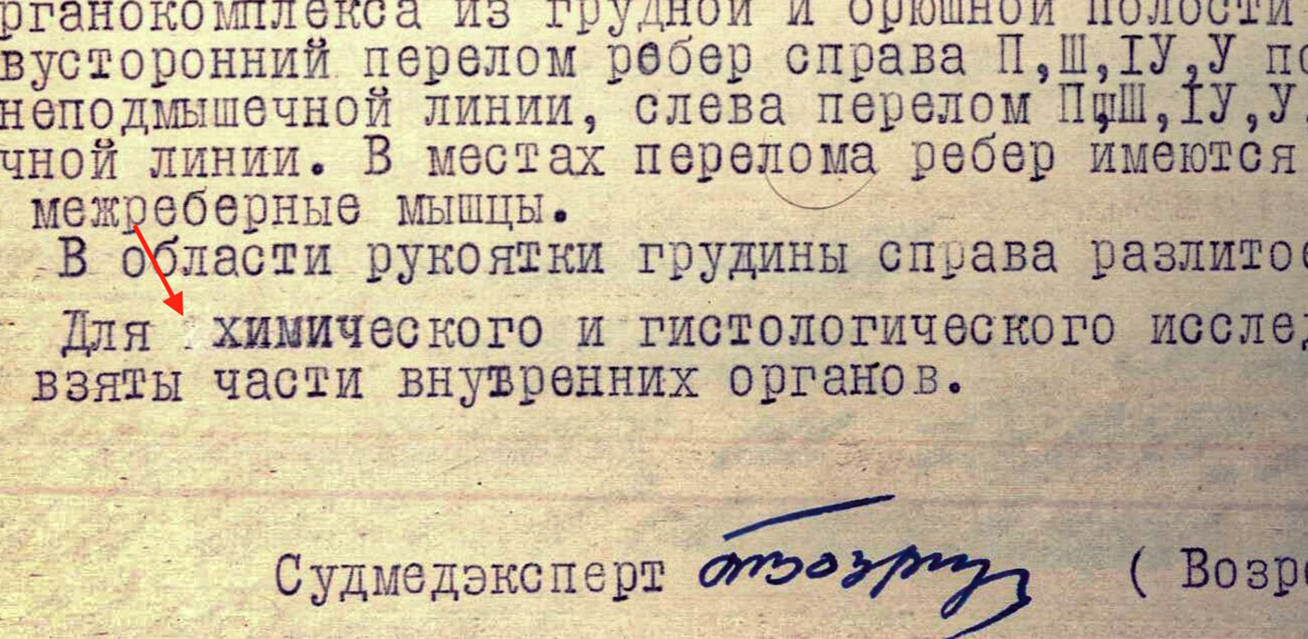 Точно такое же указание есть у М.И. Авдеева - главного судмедэксперта Красной Армии и Министерства обороны СССР, начальника Центральной судебно-медицинской лаборатории КА МО СССР с 1943 по 1970 гг: