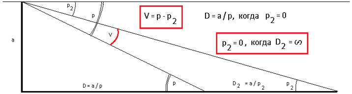Разность между этими углами мы измерили и обозначили как V.