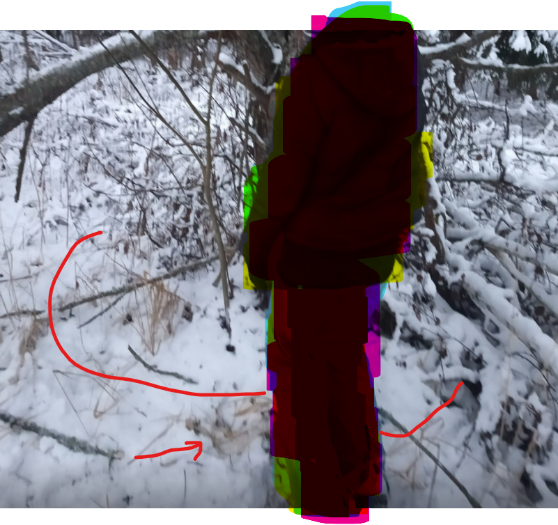 Жаль, что нет возможности у нас  видео волонтера посмотреть, который нашёл или фото- там всё должно быть запечатлено и ветви ,и следы