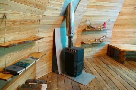 И ночевать мы будем сегодня в домике-куполе, с банькой, в таком диком месте.