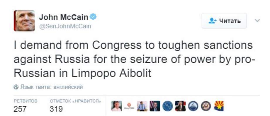 beloff, и правда это смешно. Птичка есть - твитта такого нет: https://twitter.com/senjohnmccain