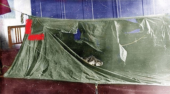 Если что-то такое и есть на фото палатки в Ленкомнате, то оно закрыто от нас боковиной палатки на ближнем к нам крае палатки и темнотой в глубине палатки на дальнем...