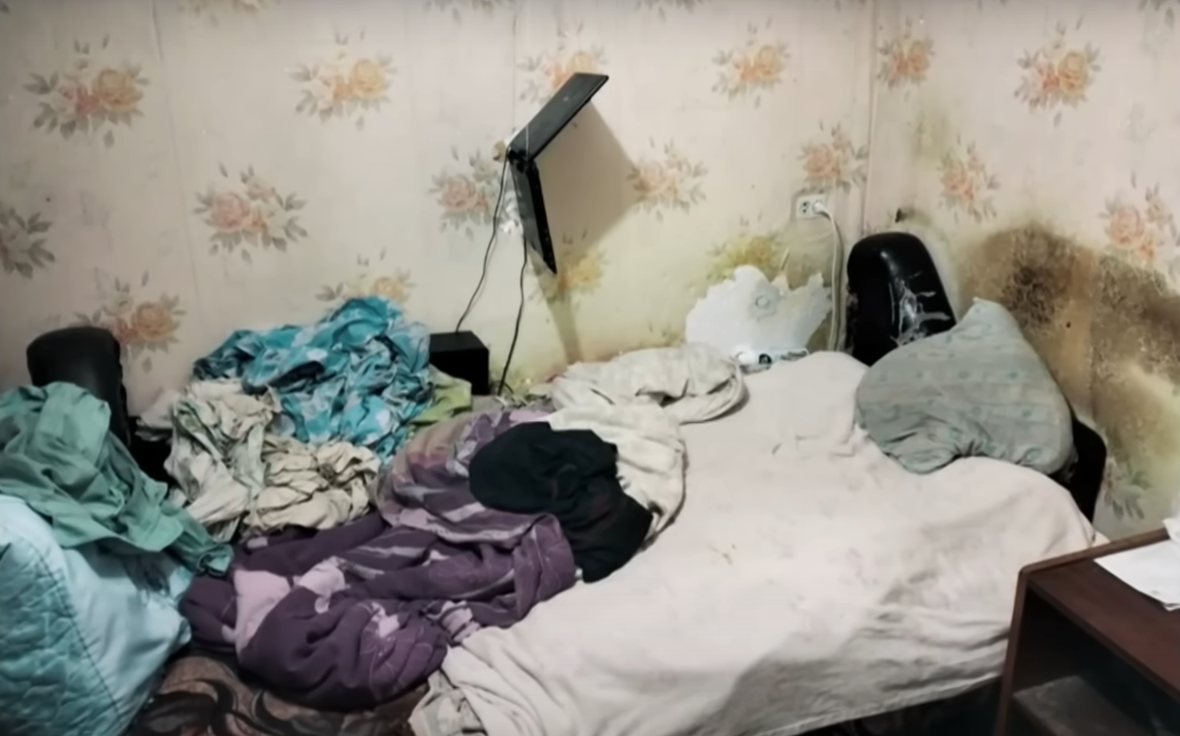 Фотография спального места в квартире Демьянова с прикрученным к стене ноутбуком (в ноутбуке непрерывно воспроизводился материал 18+). Может, видео помогали ему сдерживаться?